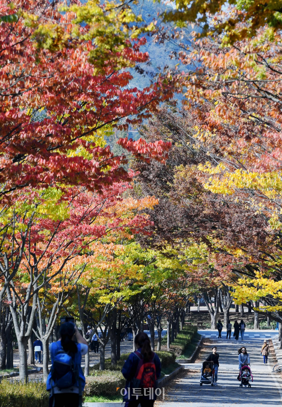 가을의 마지막 절기를 알리듯 수도권에도 단풍 소식이 찾아왔다. 서리가 내리는 시기를 뜻하는 ‘상강(霜降)’인 24일 인천 남동구 인천대공원에 형형색색 물들어가는 단풍이 깊어가는 계절의 정취를 전하고 있다.