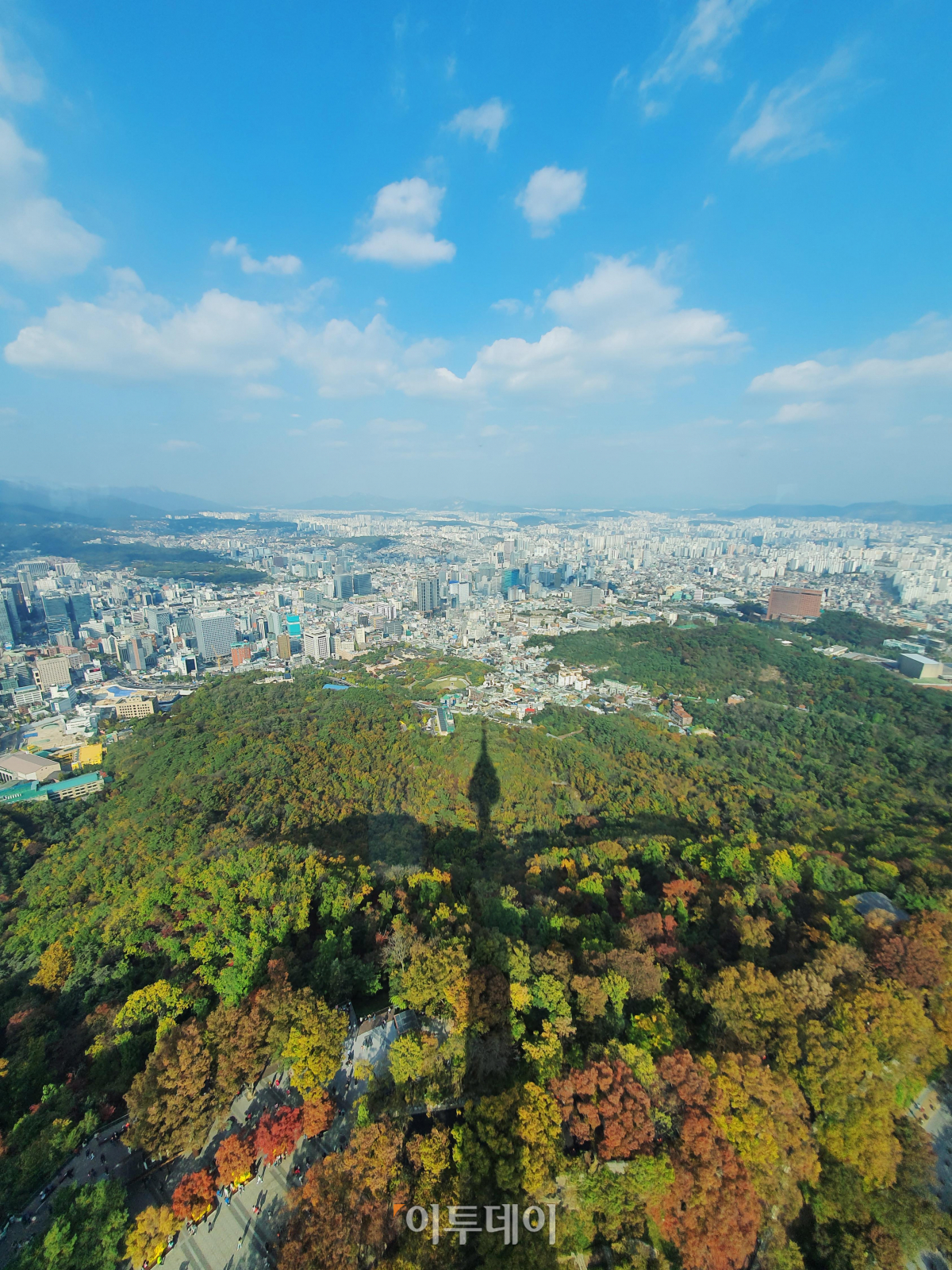 전국이 쾌청한 날씨를 보인 27일 서울 남산의 형형색색 물들어가는 단풍 위로 푸른 하늘이 펼쳐져 있다.