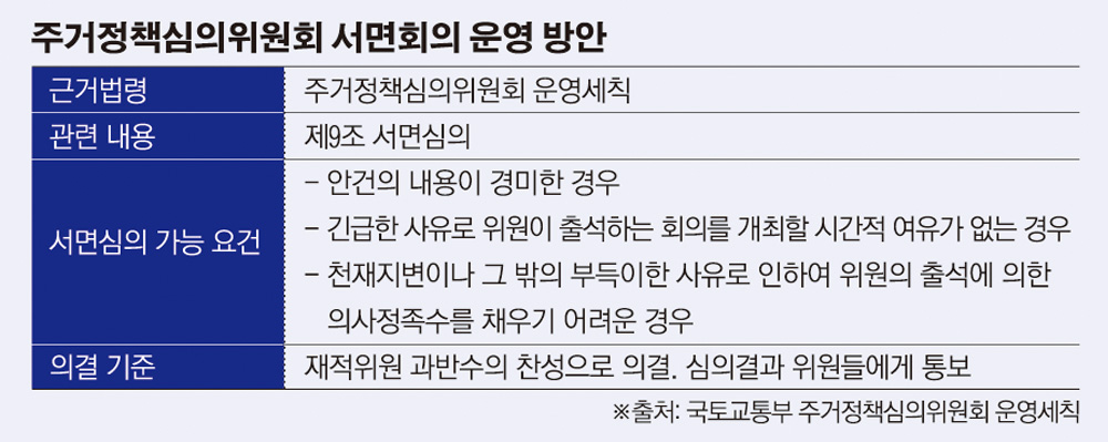 분양가 상한제가 예민한 사안인 만큼 서면회의로 진행할 경우 위원들의 의견이 제대로 반영될 수 있는지에 대한 우려도 나올 수 있다. 이미 주정심이 대면회의보다 서면회의를 더 많이 진행해 ‘거수기’ 논란이 있었다.