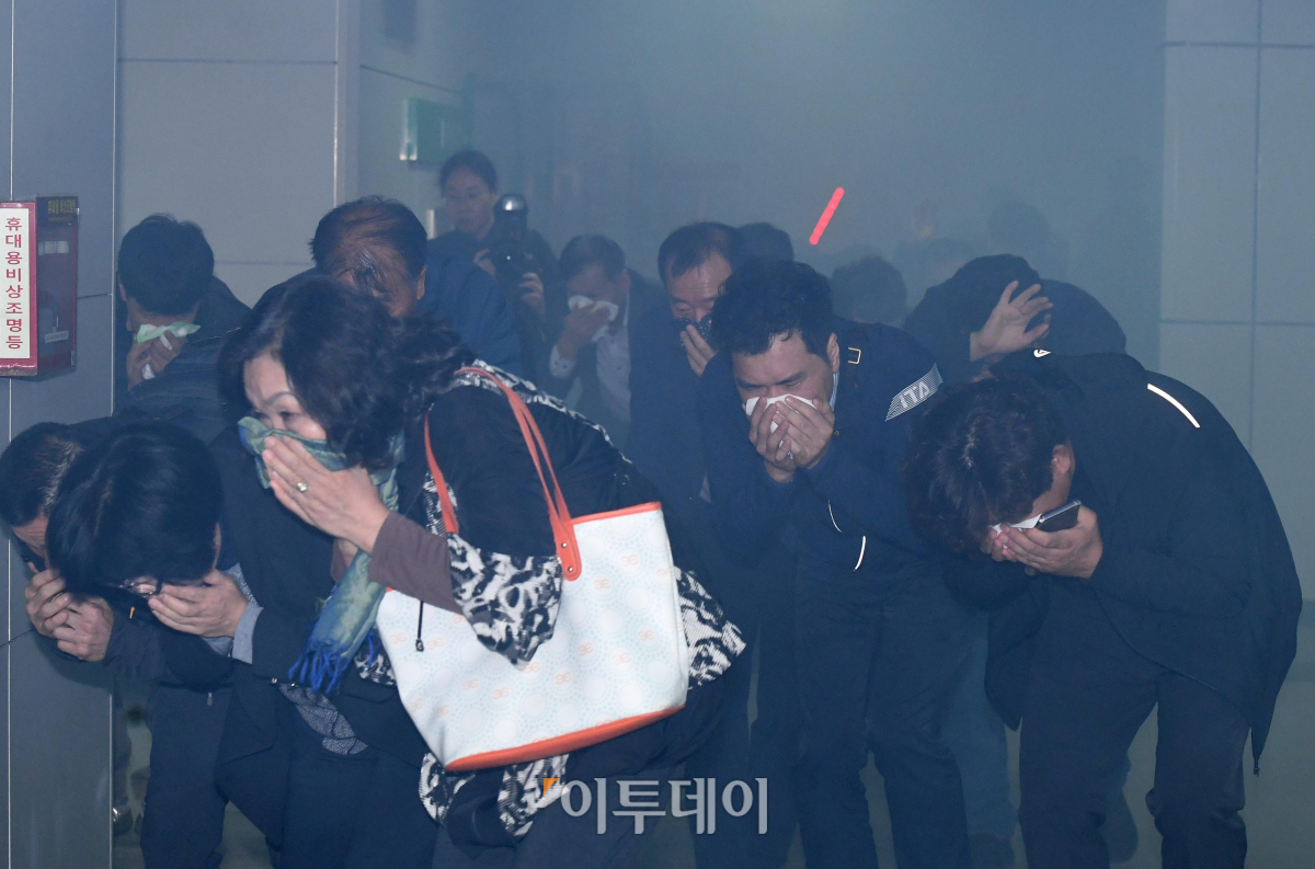 29일 서울 구로구 신도림역에서 전동차 폭발 테러와 대형 화재 발생 상황을 가정한 재난대응 안전한국훈련이 실시되고 있다.