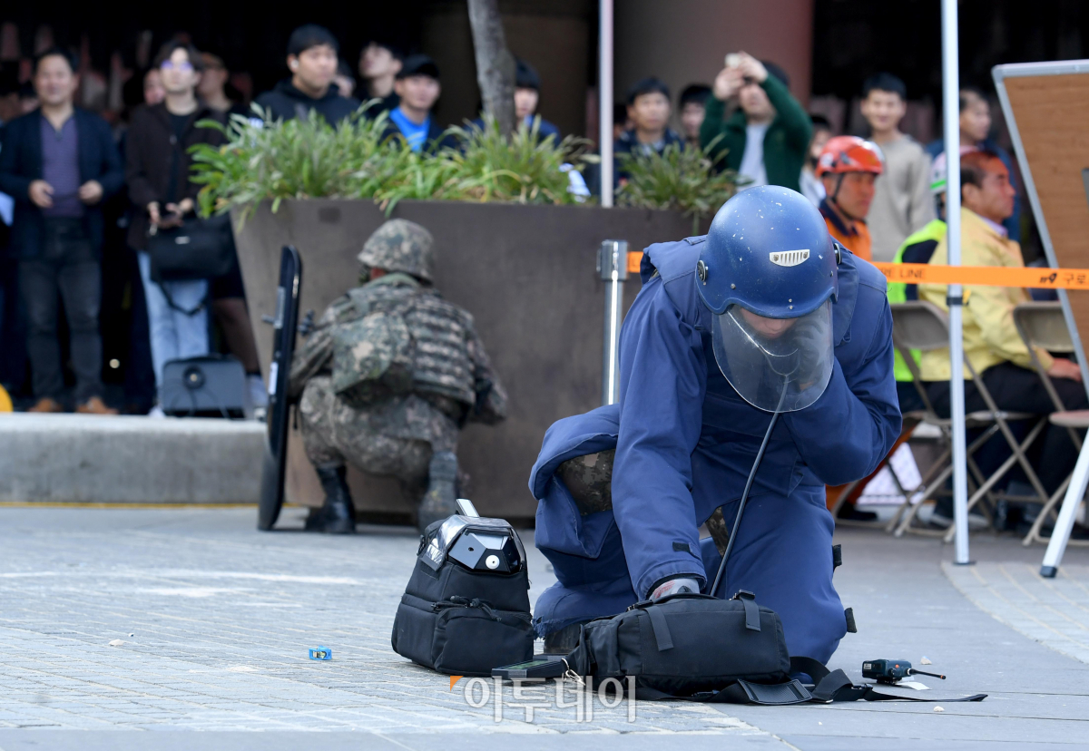 29일 서울 구로구 신도림역에서 전동차 폭발 테러와 대형 화재 발생 상황을 가정한 재난대응 안전한국훈련이 실시되고 있다.