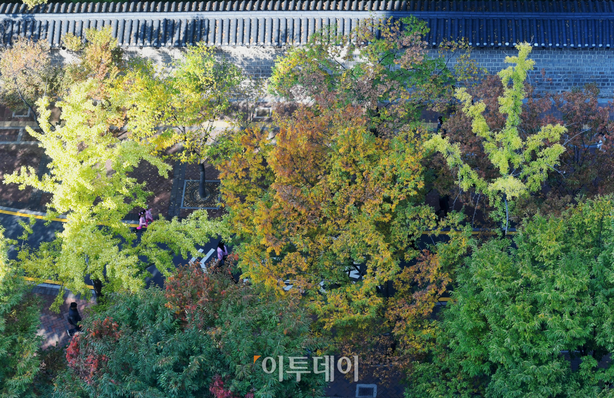 맑지만 일교차 큰 가을날씨를 보인 30일 서울 중구 세종대로 덕수궁의 단풍이 형형색색 물들어가고 있다.