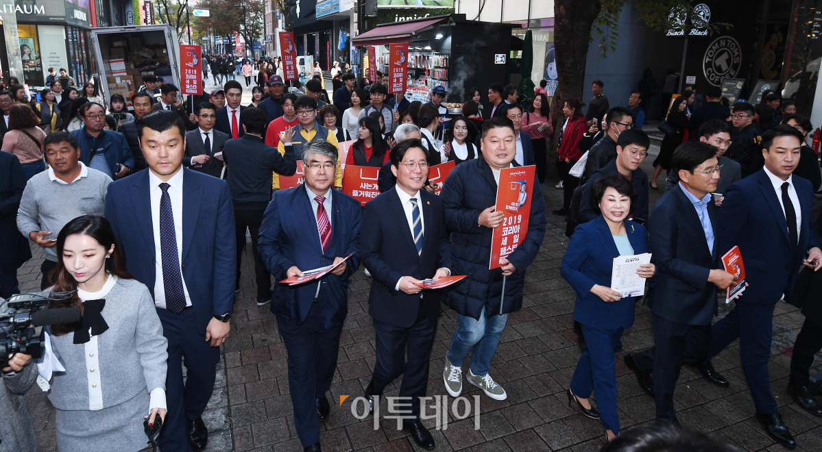 국내 최대규모의 쇼핑행사인 ‘2019 코리아세일페스타’ 시작을 하루 앞둔 31일 성윤모 산업통상자원부 장관, 김연화 2019 코리아세일페스타 추진위원회 위원장, 홍보모델 방송인 강호동 등이 서울 중구 명동 일대에서 코리아세일페스타를 홍보하고 있다. 올해 코리아세일페스타는 내달 1일부터 22일까지 전국 참여업체 매장과 온라인에서 동시에 진행되며, 약 650여개 유통·제조·서비스 업체가 업체별로 할인행사를 자율 추진한다.