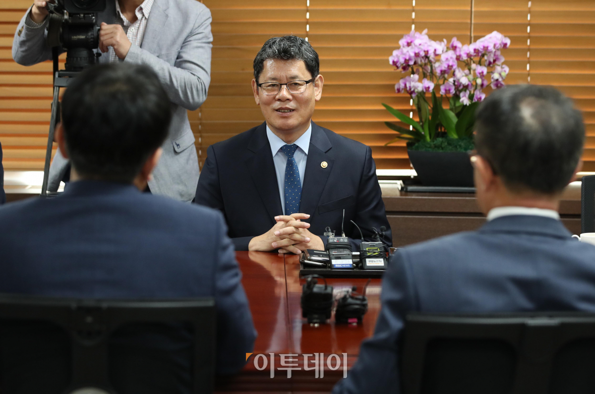 김연철 통일부 장관이 31일 서울 종로구 세종대로 정부서울청사에서 금강산관광 사업자인 배국환 현대아산 사장, 안영배 한국관광공사 사장과 북한의 남측 시설 철거 요구 등 관련 문제를 협의하고 있다.