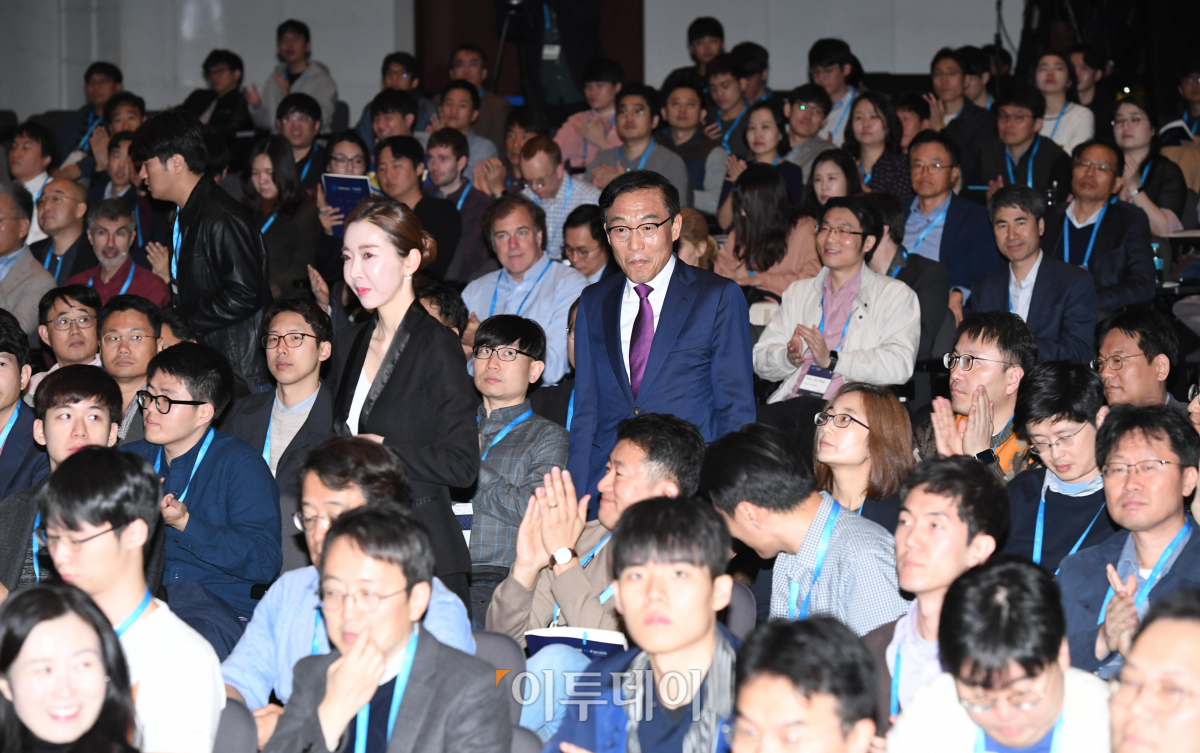김기남 삼성전자 대표이사 부회장이 4일 서울 서초구 삼성전자 서초사옥에서 열린 ‘삼성 AI 포럼 2019’에 참석하고 있다. 삼성 AI 포럼은 저명한 인공지능(AI) 분야 석학들을 초청해 최신 연구 동향을 공유하고 응용 및 혁신 방향을 모색하는 기술 교류의 장이다.