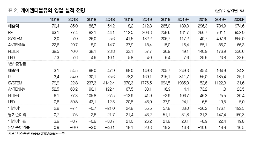 그는 “다만 국내의 지속적인 5G 투자에 이어 이달 중국이 5G 상용화를 시작했다”며 “내년 상반기에는 일본의 본격적인 5G 투자가 예상돼, 진행 중인 해외 투자 관련 프로젝트 진행 시 내년 추가적인 성장 가능할 것”이라고 전망했다.