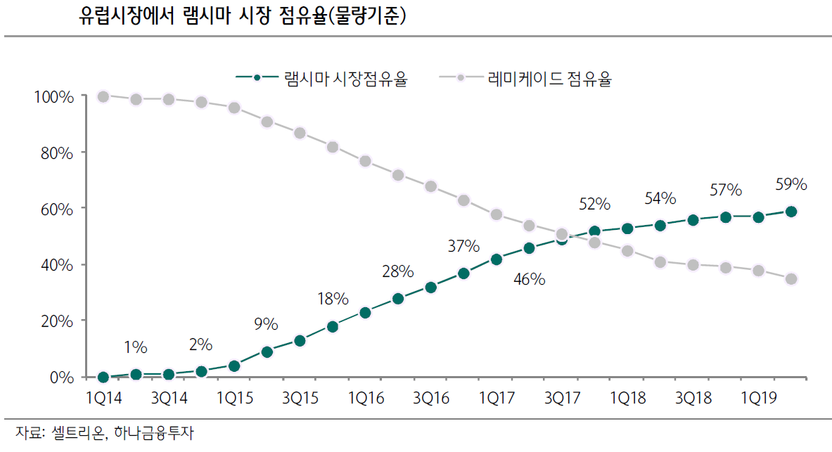 선 연구원은 “내년 2분기 출시 예정인 램시마SC가 새로운 성장 동력으로 고성장을 이끌고 올해 4분기와 내년 상반기에 각각 트룩시마와 허쥬마가 상반기 미국 시장에 출시되면서 고성장세를 주도할 것”이라고 예상했다.