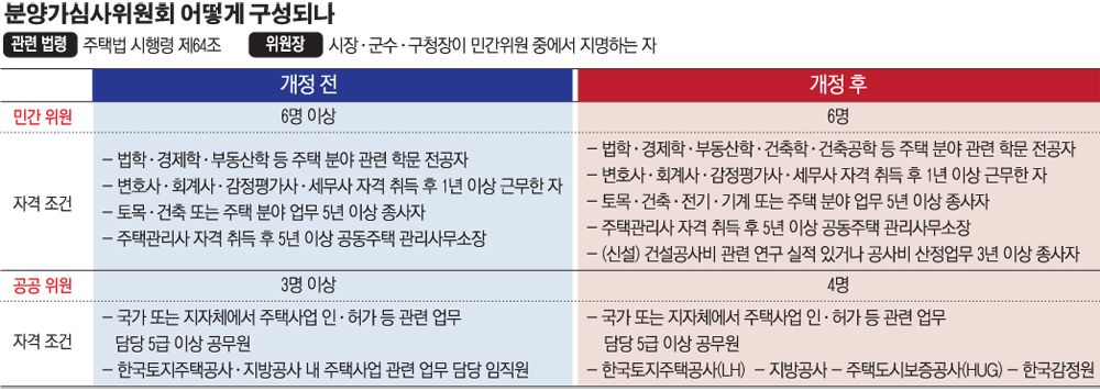 국토부도 분심위의 전문성을 위해 HUG와 감정원을 심사위원으로 추가했다고 설명했다. 국토부 관계자는 “HUG는 분양보증 발급 업무를 맡으면서 고분양가 관리 시스템을 운영하고 있고, 그 부분에 있어서 전문성이 충분히 있다고 판단했다”고 말했다.