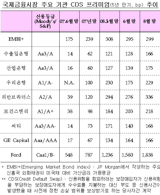 [표] 국제금융시장 주요기관 CDS 프리미엄 추이