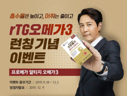 종근당건강 프로메가는 ‘알티지(rTG) 오메가3’ 출시를 기념해 특별 프로모션을 실시한다.