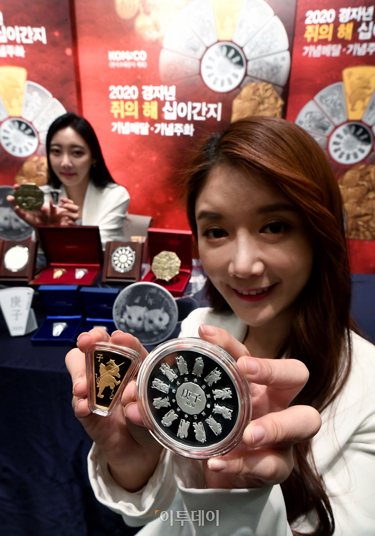 풍산화동양행이 18일 서울 서대문구 충정로 풍산빌딩에서 2020 경자년(庚子年) 쥐의 해를 앞두고 한국조폐공사 기념메달과 세계 주요 조폐국들의 기념주화, 메달을 선보이고 있다. 이번 기념메달과 주화는 지혜와 총명을 상징하는 쥐의 해를 맞아 가내의 복과 부를 기원하는 의미로 기획됐다. 한국조폐공사 제조 기념메달은 부채꼴 금·은메달 세트(순도 99.9%, 금 18.7g, 은 10.2g, 300세트 한정), 부채꼴 은메달(순도 99.9%, 은 10.2g, 1000장 한정), 대형 은메달(순도 99.9%, 은 120g, 500장 한정), 팔각형 캘린더 메달(구리 65%, 아연 35%, 315g, 2000장 한정)로 구성됐다.