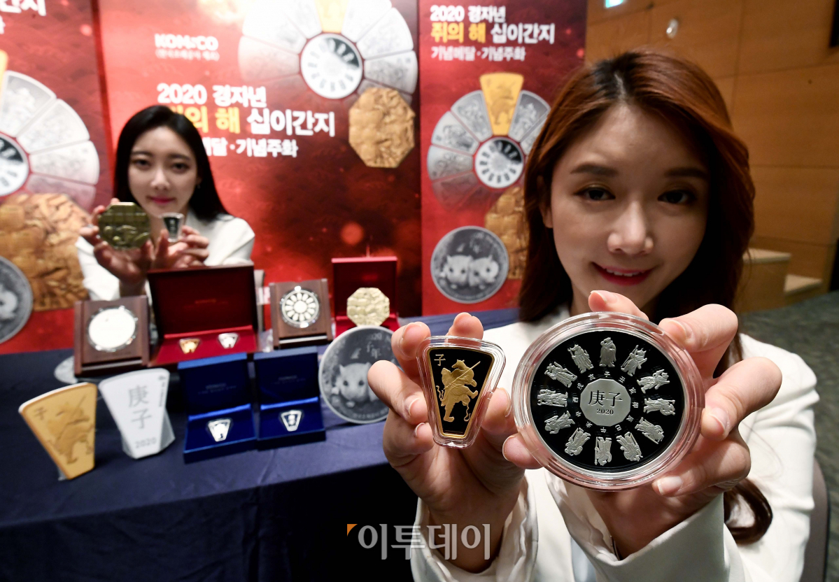 풍산화동양행이 18일 서울 서대문구 충정로 풍산빌딩에서 2020 경자년(庚子年) 쥐의 해를 앞두고 한국조폐공사 기념메달과 세계 주요 조폐국들의 기념주화, 메달을 선보이고 있다. 이번 기념메달과 주화는 지혜와 총명을 상징하는 쥐의 해를 맞아 가내의 복과 부를 기원하는 의미로 기획됐다. 한국조폐공사 제조 기념메달은 부채꼴 금·은메달 세트(순도 99.9%, 금 18.7g, 은 10.2g, 300세트 한정), 부채꼴 은메달(순도 99.9%, 은 10.2g, 1000장 한정), 대형 은메달(순도 99.9%, 은 120g, 500장 한정), 팔각형 캘린더 메달(구리 65%, 아연 35%, 315g, 2000장 한정)로 구성됐다.
