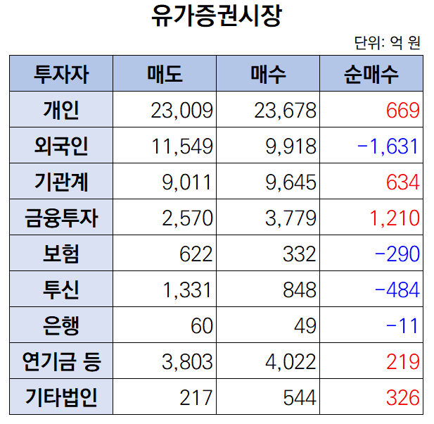 이날 외국인은 홀로 1631억 원 규모의 매물을 출회했다. 반면 개인과 기관은 각각 669억 원, 634억 원을 순매수했다.