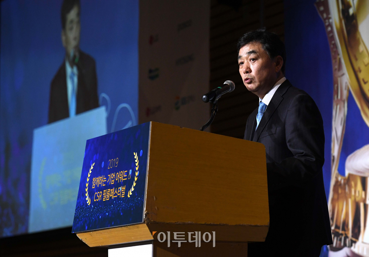 김상철 이투데이미디어 대표이사가 19일 서울 여의도 전경련회관 컨퍼런스센터에서 열린 ‘2019 함께하는 기업 어워드 & CSR 필름페스티벌’에서 개회사를 하고 있다. 지난 7년간 ‘대한민국 CSR 필름페스티벌’을 주관하며 사회적 책임 활동에 대한 중요성을 널리 알려온 이투데이는 올해부터 사회문제 인식 확산과 가치 실현에 더욱 앞장서고자 ‘함께하는 기업 어워드 & CSR 필름페스티벌’로 외연을 확장했다. 이번 행사에선 사회적 책임을 담은 영상을 나누고 ‘함께하는 기업’을 시상·격려했다.