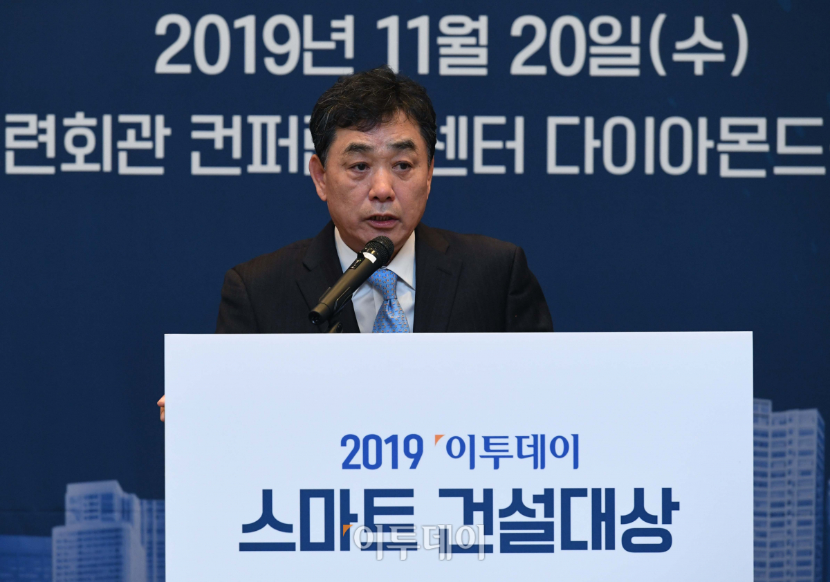 김상철 이투데이미디어 대표이사가 20일 서울 여의도 전경련회관 컨퍼런스센터에서 열린 ‘2019 이투데이 스마트 건설대상’에서 개회사를 하고 있다. 이투데이 스마트 건설대상은 대한민국 건설사들의 주택사업·친환경·동반성장 등의 성과를 나누고 우수기업에 대한 시상을 하는 자리다.