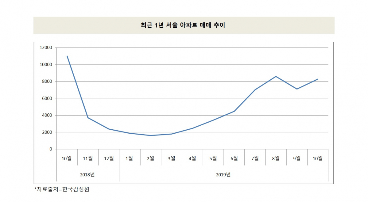 자치구별로 보면 성북ㆍ서대문ㆍ영등포ㆍ동작구 등 4개 지역을 제외하고 작년보다 거래량이 모두 감소했다. 강남4구(강남ㆍ서초ㆍ송파ㆍ강동구)의 아파트 매매량도 작년 10월 2683가구에서 올해 1825가구로 줄었다.