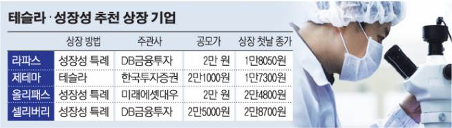 라파스 이외에도 하반기 테슬라ㆍ성장성 특례를 통해 상장한 기업들의 주가는 한동안 공모가를 회복하지 못하는 등 부진했다. 9월 20일 상장한 올리패스의 경우 같은 달 말부터 주가가 공모가를 밑돌기 시작해 줄곧 공모가 근처에 머물러 있다. 테슬라 상장 2호 기업으로 주목받았던 제테마는 상장 첫날 공모가(2만1000원)를 17.6% 하회하는 1만7300원에 마감해 풋백옵션 우려가 번지기도 했다.