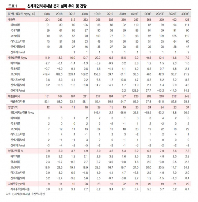 한편, “수익성 측면에서는 국내 의류 부문에서 마트향 브랜드의 매출 비중이 줄어들고, 화장품 부문에서 신세계인터코스를 통해 수직계열화로 원가율을 개선할 전망”이라고 덧붙였다.