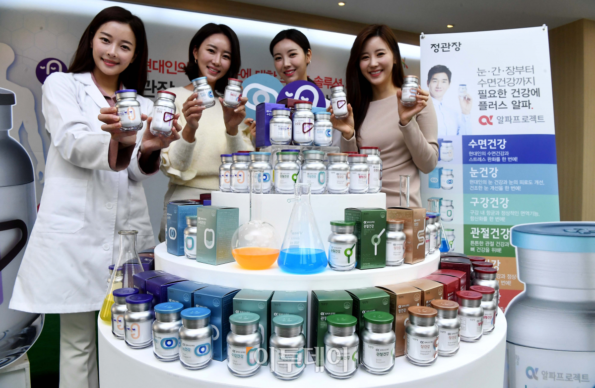 KGC인삼공사가 2일 서울 중구 충무로 한국의 집에서 현대인에게 8가지(수면, 간, 눈, 구강, 위, 장, 관절, 혈행) 건강이슈에 대한 스마트 솔루션을 지원하는 ‘정관장, 알파프로젝트’ 캠페인을 알리며 맞춤형 복합건강기능성 제품을 소개하고 있다.