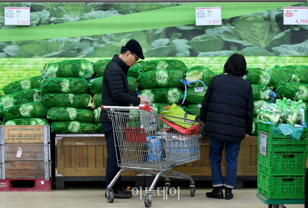 김장철을 맞아 무와 배추 등 김장채소류 가격이 폭등해 가계부담이 커지고 있다. 2일 통계청의 소비자물가 동향에 따르면 11월 무 가격은 전년동월대비 67.4% 상승했으며, 배추도 같은 기간 56.6% 올랐다. 이날 서울의 한 대형마트에서 시민들이 배추를 구매하고 있다.