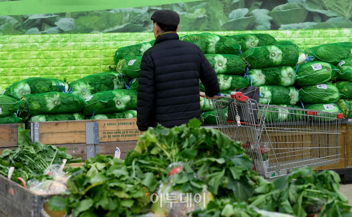 김장철을 맞아 무와 배추 등 김장채소류 가격이 폭등해 가계부담이 커지고 있다. 2일 통계청의 소비자물가 동향에 따르면 11월 무 가격은 전년동월대비 67.4% 상승했으며, 배추도 같은 기간 56.6% 올랐다. 이날 서울의 한 대형마트에서 시민이 배추를 살펴보고 있다.