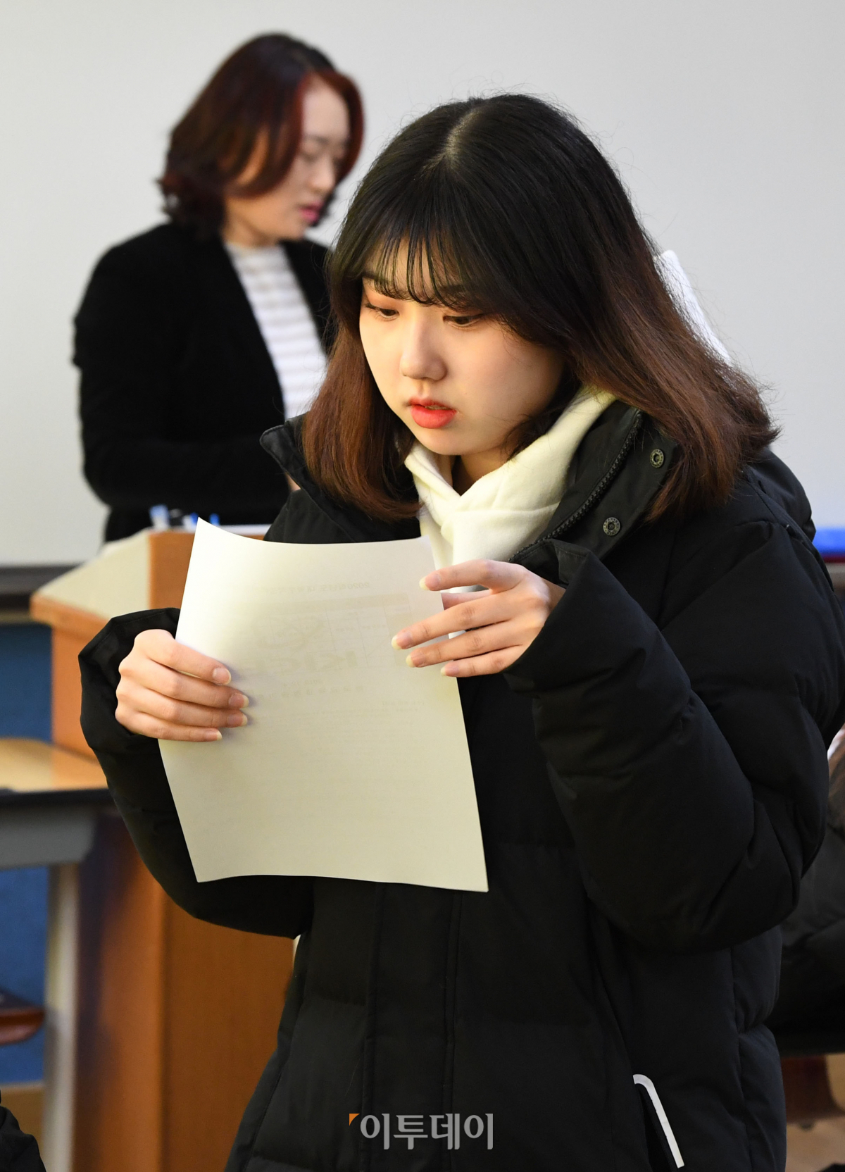 2020학년도 대학수학능력시험 성적 통지일인 4일 서울 영등포구 여의도여고에서 학생들이 수능 성적표를 확인하고 있다.