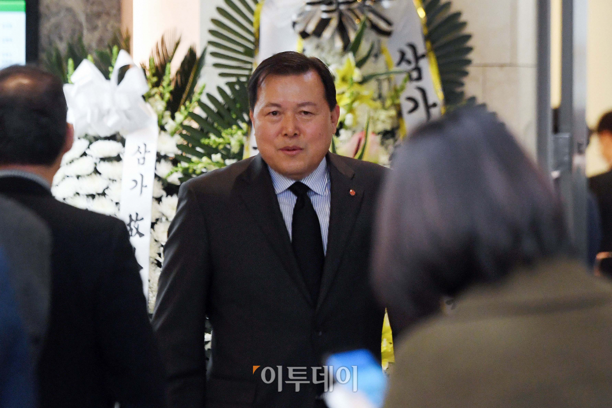 10일 경기 수원시 아주대병원 장례식장에 마련된 故 김우중 전 대우그룹 회장의 빈소를 황각규 롯데 부회장이 찾고 있다. 김 전 회장은 지난 9일 오후 11시 50분 숙환으로 별세했다.