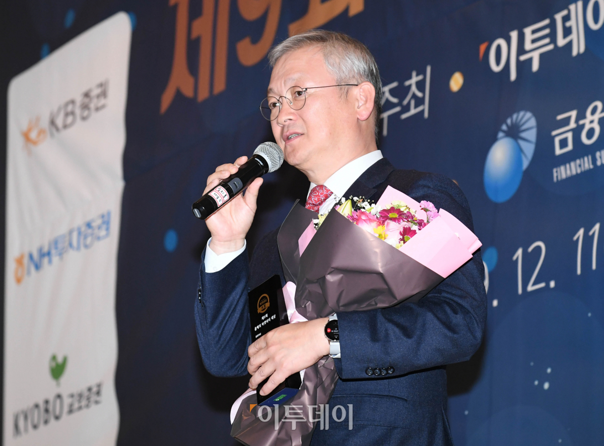 ‘제9회 올해의 마켓리더 대상’이 11일 서울 여의도 중소기업중앙회에서 열린 가운데 종합대상인 금융감독원장상을 수상한 정영채 NH투자증권 사장이 소감을 밝히고 있다. 이투데이미디어가 주최한 이번 행사는 올 한해를 마감하면서 증권업계를 이끈 마켓리더들의 노력을 부각시키고 금융투자업계의 발전과 건전한 투자문화 정착을 위한 시장 분위기를 조성하기 위한 자리로 선진금융회사로 발돋움을 준비하고 있는 증권사, 자산운용사 등을 대상으로 10여개의 부문별 업체를 선정해 시상했다.