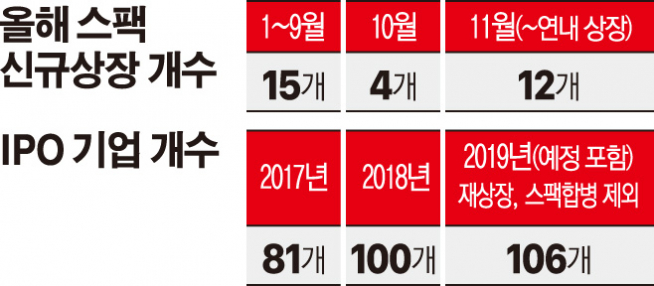 12일 금융투자업계에 따르면 이미 상장했거나 연내 상장 예정인 스팩 수는 31개다. 이 중 절반이 넘는 16개가 10월 이후 상장했다.