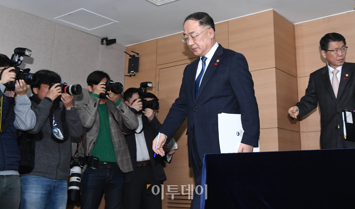 홍남기 부총리 겸 기획재정부 장관이 16일 서울 종로구 세종대로 정부서울청사에서 주택시장 안정화 방안 관련 관계부처 합동 브리핑을 마친 뒤 나서고 있다.