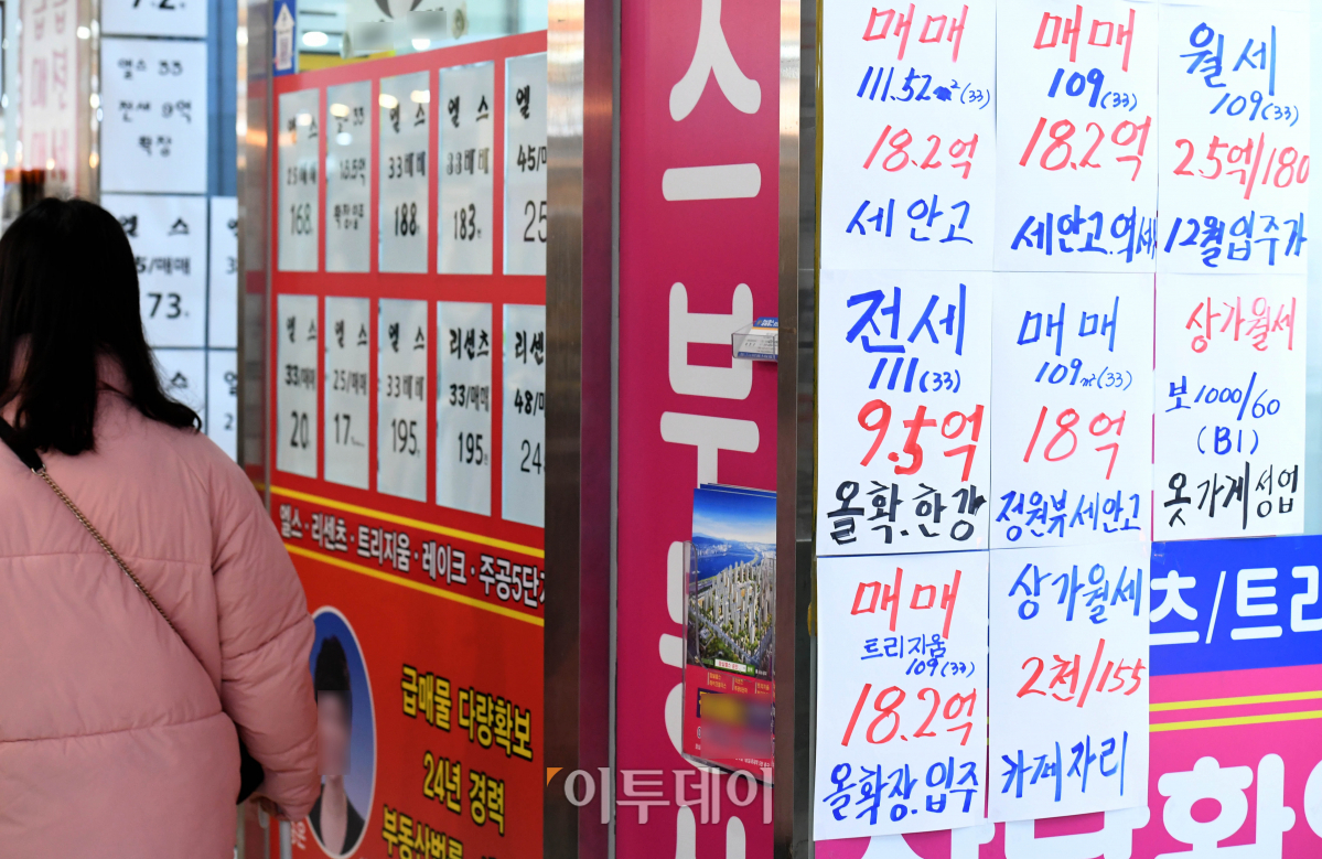 정부가 종합부동산세와 재산세 등의 산정 근거가 되는 부동산 공시가격을 고가 아파트 위주로 대폭 인상하기로 발표한 17일 서울 송파구 한 상가의 부동산중개업소에 아파트 매매 가격이 게시돼 있다. 국토교통부는 17일 ‘2020년 부동산 가격공시 및 공시가격 신뢰성 제고 방안’을 발표했다. 공시가격의 시세 반영률이 낮고 부동산 유형별 형평성이 적절하지 않다는 지적이 제기된 데 따른 조치로 공동주택의 시세 구간별 공시가격 현실화율 목표치를 보면 9억~15억 원 70%, 15억~30억 원 75%, 30억 원 이상 80%다. 국토부는 내년에 공동주택 평균 현실화율이 69.1%로 올해(68.1%)보다 1.0%포인트 오를 것으로 예상했다.