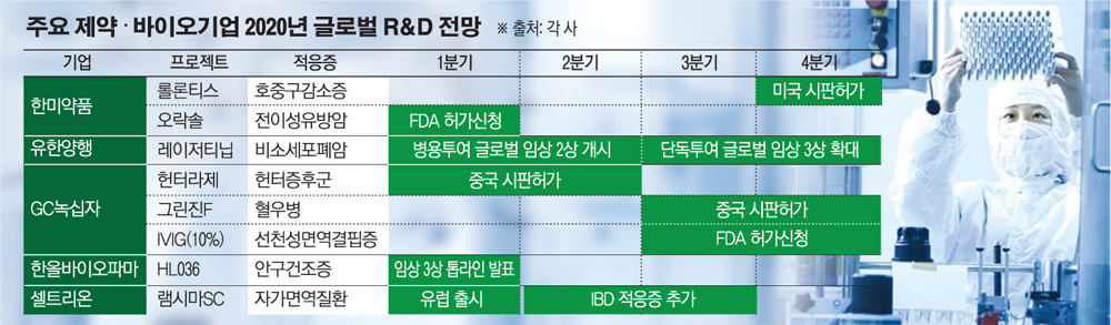 18일 업계에 따르면 내년에는 한미약품과 유한양행, 셀트리온 등 굵직한 기업을 중심으로 활발한 글로벌 R&D가 펼쳐진다.