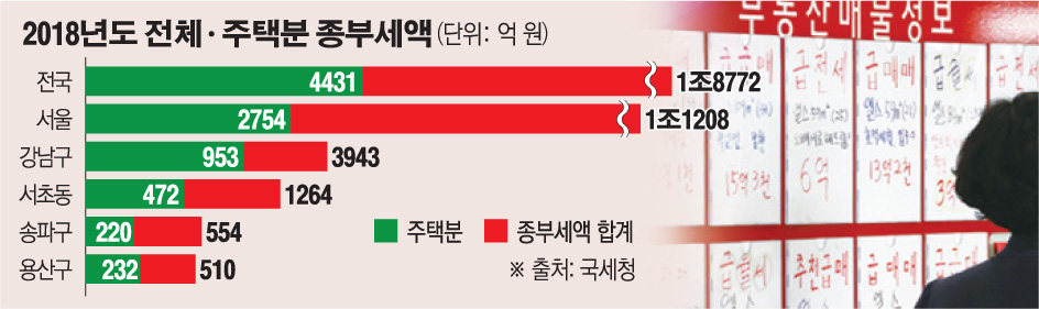 지난해 서울 강남3구(강남ㆍ서초ㆍ송파구)와 용산구 거주자가 전국 주택 종부세의 40% 이상을 납부했다는 분석이 나왔다.