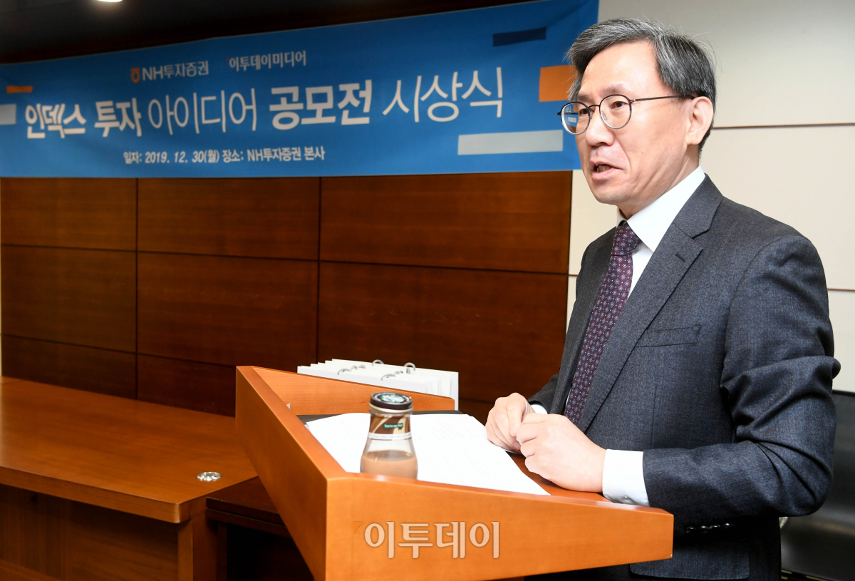 30일 서울 여의도 NH투자증권 본사에서 열린 이투데이-NH투자증권 ‘인덱스 투자 아이디어 공모전’ 시상식에서 김덕헌 이투데이 편집국장이 심사평을 하고 있다.