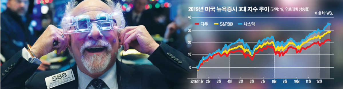 R의 공포가 완화한 데다 장장 2년간 세계 경제를 짓누르던 미·중 무역 전쟁도 합의점을 찾게 됐다. 아울러 세 차례에 걸친 미국 연방준비제도(Fed·연준)의 금리 인하와 기술주의 질주가 맞물리면서 뉴욕 증시에 훈풍이 불었다.