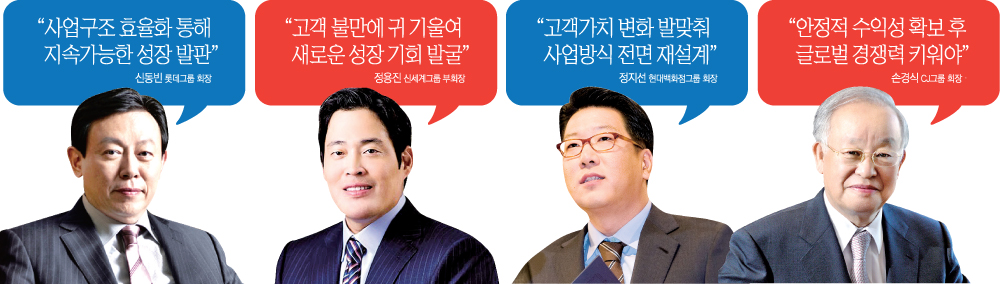 유통 대기업 총수들의 신년사는 ‘위기’와 ‘변화’로 요약된다. 내수 경기 침체와 온라인 쇼핑의 공세에 직격탄을 맞으며 부진에 빠진 가운데 저성장과 규제 강화 등 대외 여건마저 불투명해졌다는 위기 의식이 강하게 반영됐다. 특히 급변하는 환경에서 살아남으려면 뼛속 깊이 달라져야 한다는 점을 강조하고 있다.
