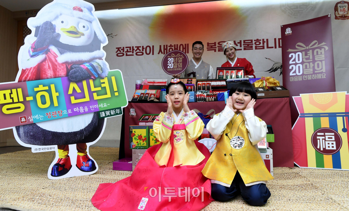 KGC인삼공사 정관장이 다가오는 설을 앞두고 6일 서울 중구 충무로 한국의 집에서 홍보모델 펭수와 함께 ‘20년 설, 20살의 마음을 선물하세요’ 행사를 알리고 있다. 오는 29일까지 전국 정관장 매장에서 진행되는 이번 행사에선 정관장 선물세트 브랜드 ‘다보록’ 24종을 비롯해 홍삼톤, 홍삼달임액, 화애락, 알파프로젝트, 굿베이스 등 정관장의 인기제품 구매시 다양한 혜택을 제공한다.
