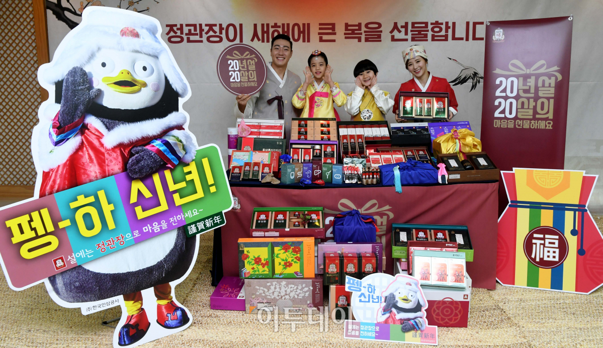 KGC인삼공사 정관장이 다가오는 설을 앞두고 6일 서울 중구 충무로 한국의 집에서 홍보모델 펭수와 함께 ‘20년 설, 20살의 마음을 선물하세요’ 행사를 알리고 있다. 오는 29일까지 전국 정관장 매장에서 진행되는 이번 행사에선 정관장 선물세트 브랜드 ‘다보록’ 24종을 비롯해 홍삼톤, 홍삼달임액, 화애락, 알파프로젝트, 굿베이스 등 정관장의 인기제품 구매시 다양한 혜택을 제공한다.