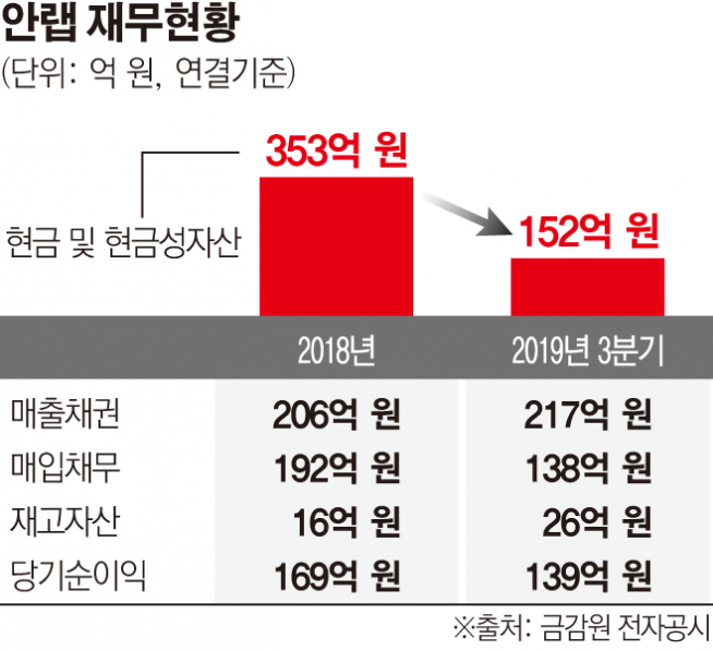 코스닥 상장사 안랩의 현금성자산이 절반 수준으로 감소한 것으로 나타났다.