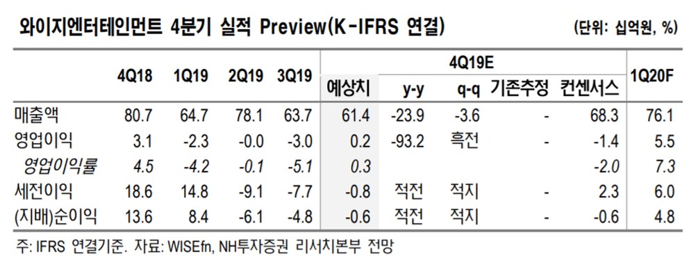 이 연구원은 "아이콘(1월), 블랙핑크(2월 말~3월)의 컴백뿐 아니라, 잠정 연기됐던 신인 그룹 트레져의 데뷔도 확정된 상황"이라며 "거버넌스 이슈로 활동이 차질이 있었던 2019년 대비 탑라인 측면의 개선이 기대되는 상황"이라고 설명했다.