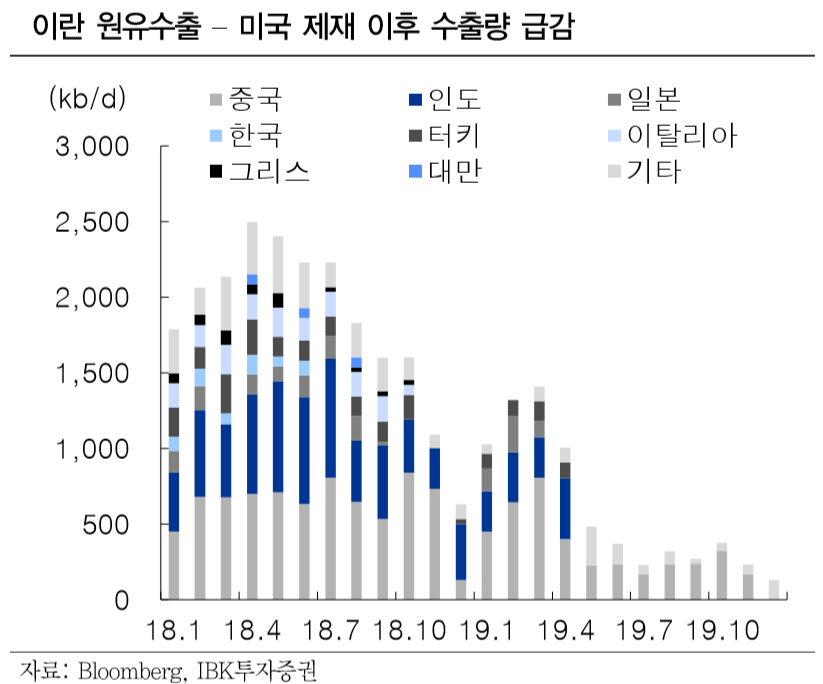 IBK투자증권은 7일 미국과 이란간의 갈등에 따른 중동 리크스를 정유주의 매수 타이밍으로 활용할 수 있다며 투자의견 ‘비중확대’를 유지했다.