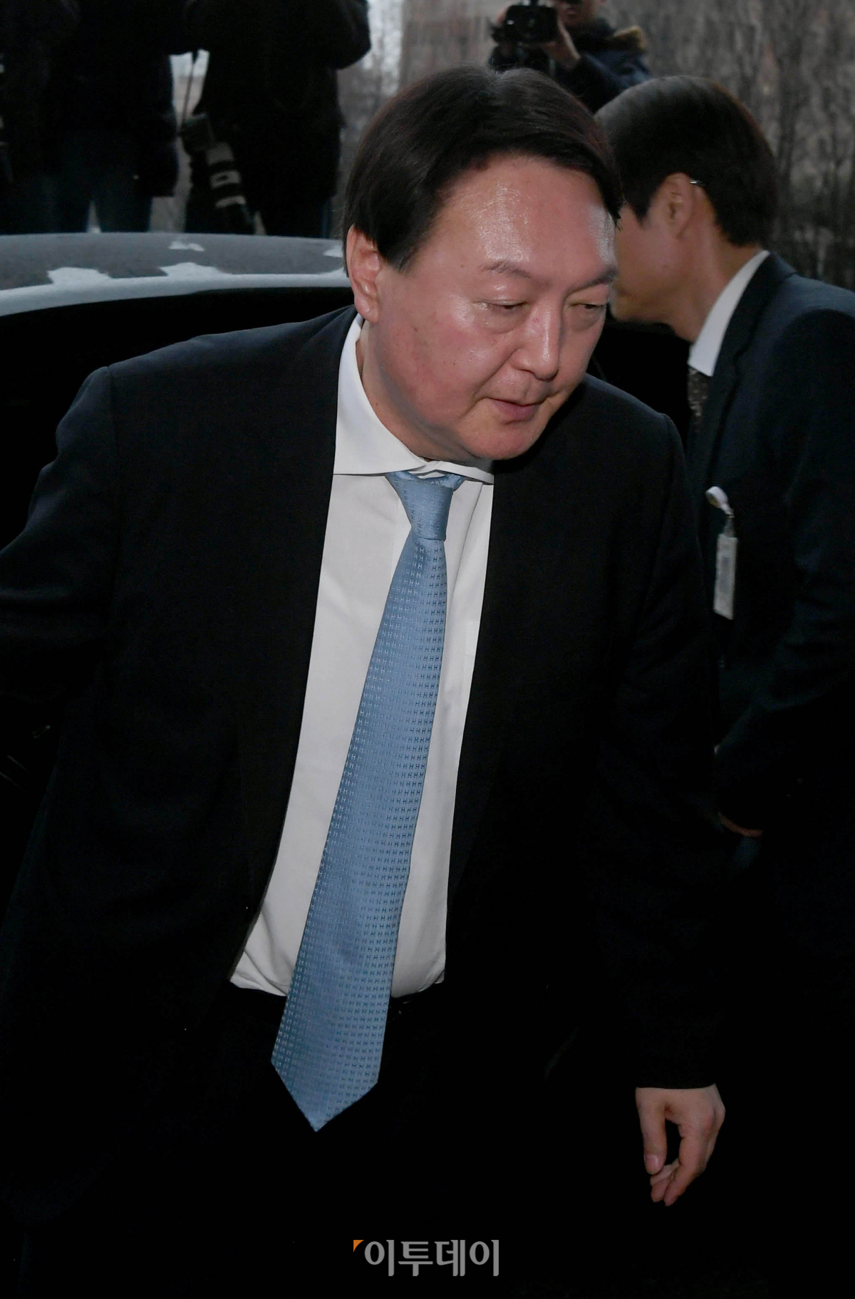 윤석열 검찰총장이 7일 경기 과천시 법무부에서 추미애 신임 법무부 장관을 만나기 위해 청사로 들어서고 있다.