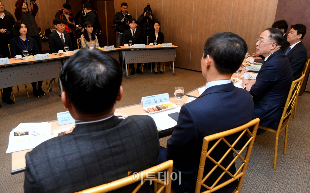 [포토] 청년구직자들과 대화하는 홍남기 부총리