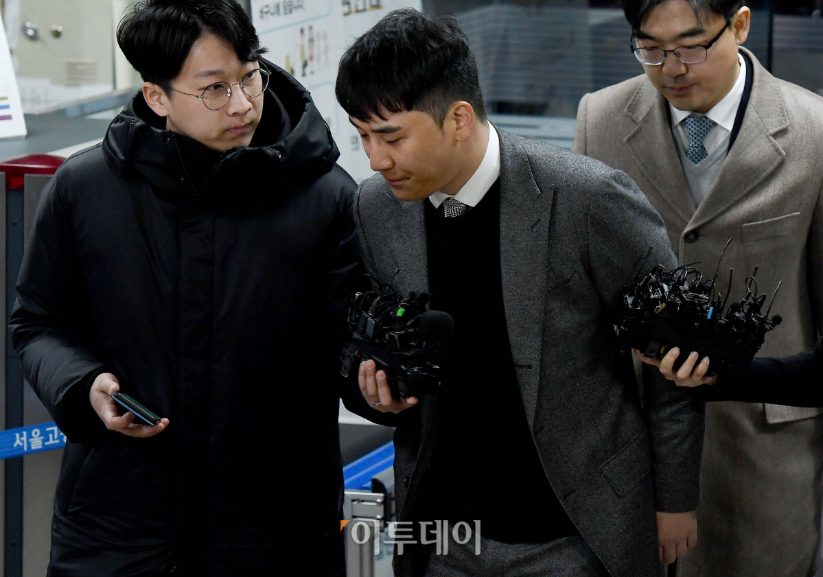 성매매 알선과 해외 원정 도박 등의 혐의를 받는 가수 승리(이승현)가 13일 서울 서초구 서울중앙지방법원에 구속 전 피의자 심문(영장실질심사)을 받기 위해 들어서고 있다.