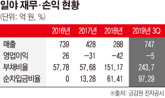 이러한 가운데 일야는 지난주 262억 원 규모의 유상증자를 결정했다. 이 중 절반가량은 타 법인 주식 취득에 활용되고 나머진 운영 및 채무상환에 활용된다.
