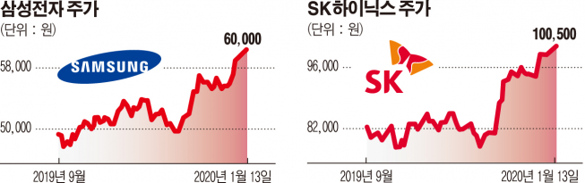 반도체 업황 회복 기대감에 삼성전자와 SK하이닉스가 연일 사상 최고 주가를 갈아치우며 고공행진을 이어가고 있다.