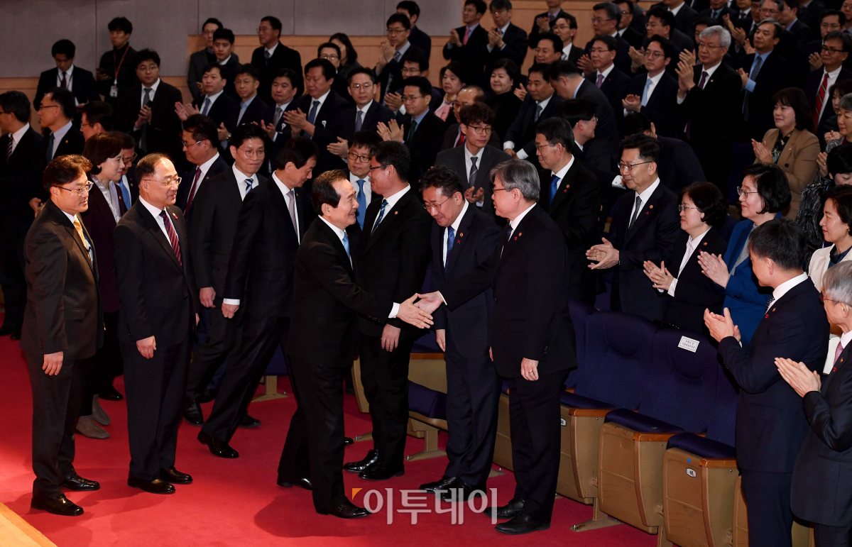 정세균 신임 국무총리가 14일 서울 종로구 정부서울청사 별관에서 열린 취임식에 참석하고 있다.
