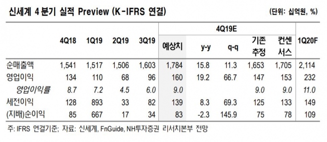 이 연구원은 백화점 부문에 대해 “쓱데이 등 그룹사 행사 참여와 따뜻한 겨울 날씨로 의류 판매 부진하겠지만, 면세점 부문에서 흑자 전환할 전망”이라고 내다봤다.