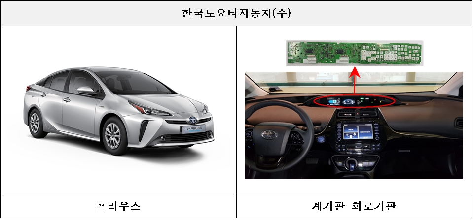 이어 한국토요타자동차에서 수입, 판매한 프리우스 38대는 계기판 내 회로기판의 결함으로 속도계 및 주행거리계 등이 표시되지 않을 가능성이 확인됐다.