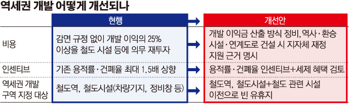 혜택은 더욱 확대한다. 국토부는 차량기지 등 철도시설이 이전한 빈 땅을 개발할 때도 역세권법을 적용하는 방안을 고려 중이다. 정부는 2018년에도 철도역 주변에만 한정됐던 역세권법의 적용 범위를 차량기지, 정비창 등 철도시설 주변으로 확대했다. 기존 용적률ㆍ건폐율 상향 인센티브와 함께 역세권 개발사업에 세제 혜택을 부여하는 방안도 검토하고 있다.